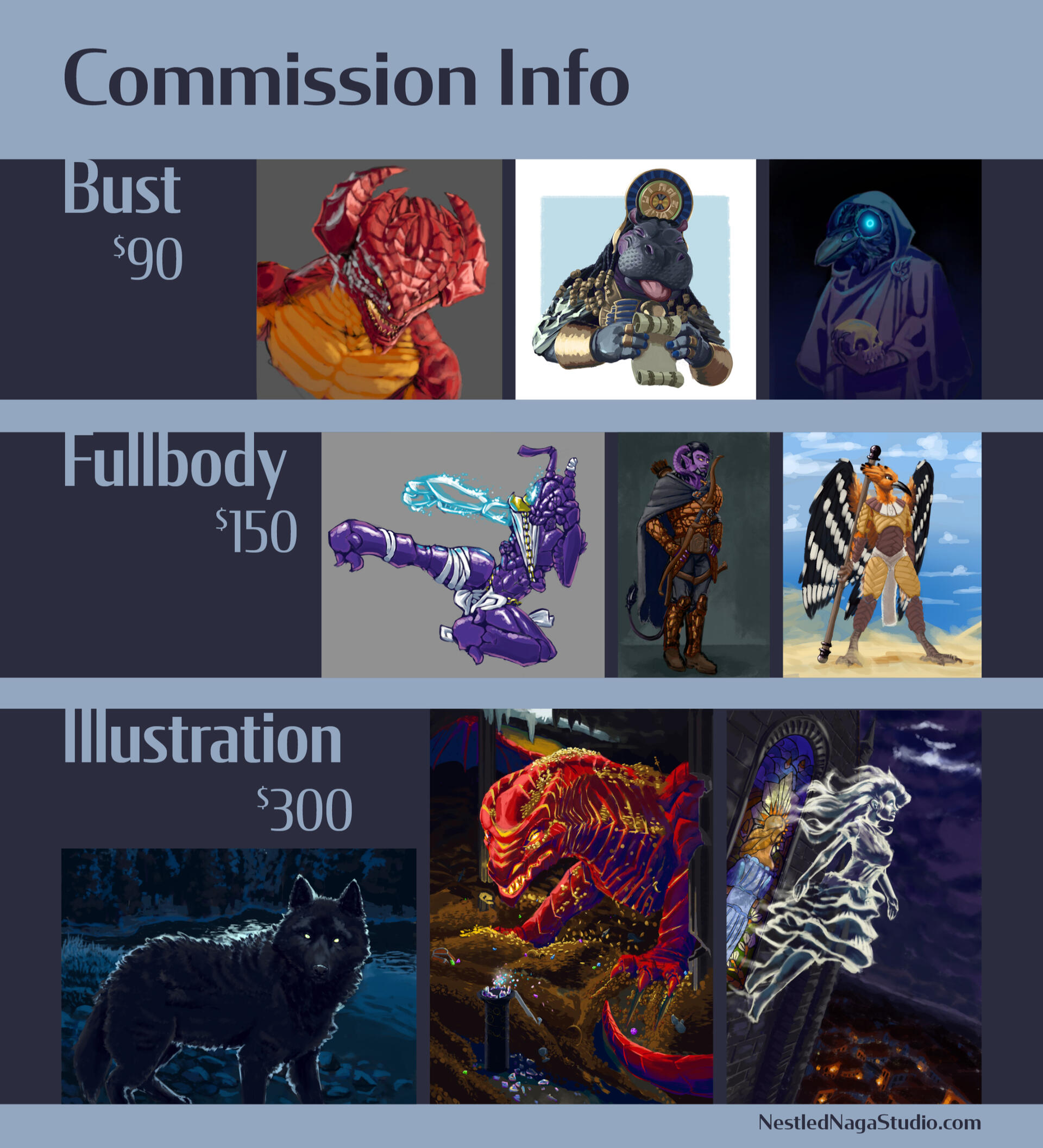 I’ve worked on many fantasy pieces and am always on the look out for new work. The complexity of the commission and number of characters will increase the initial price. If you wish to contact me about a commission, you can reach me at [email protected].